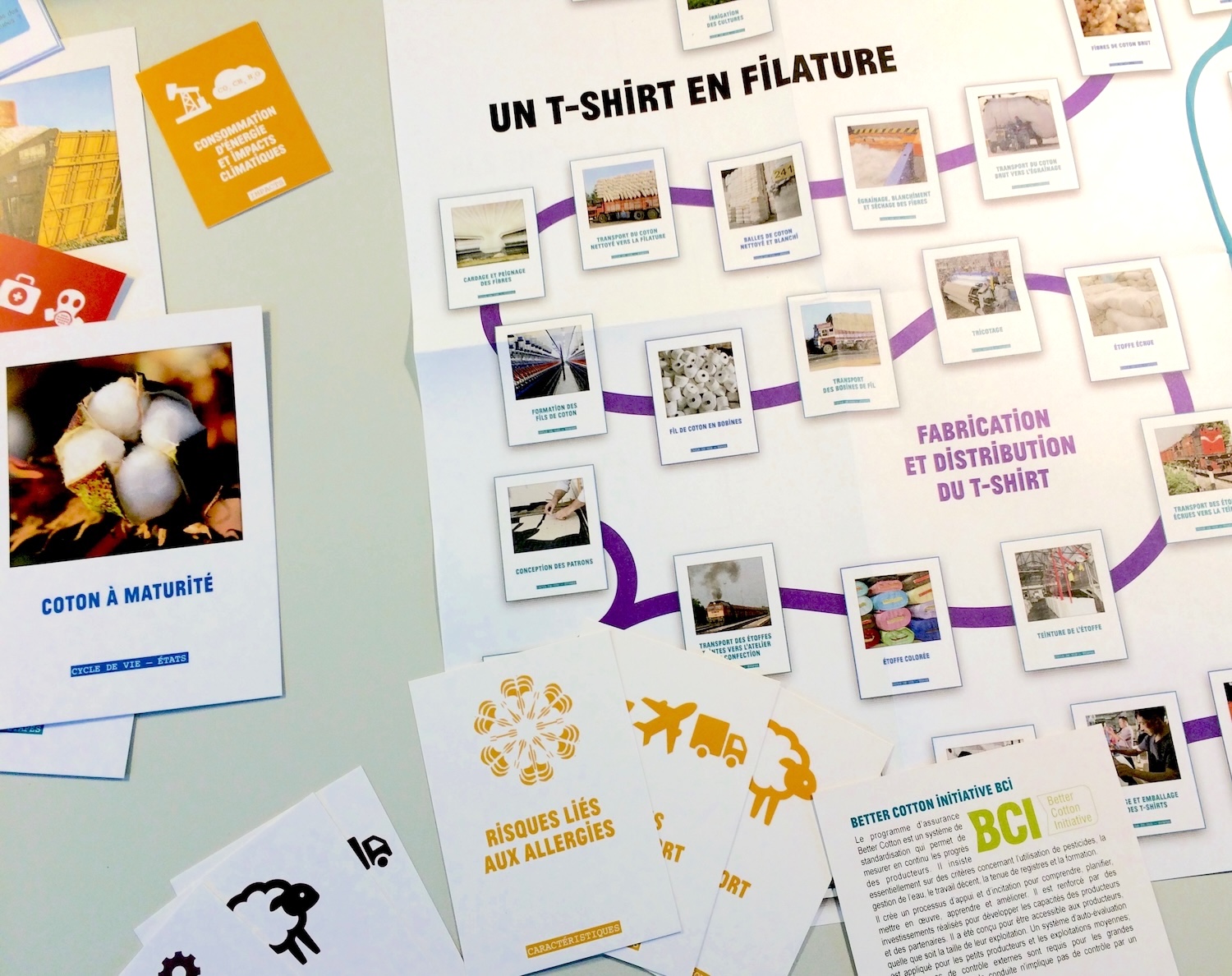 Avec l’atelier Un t-shirt en filature, les participantes et participants découvrent de manière ludique et participative toutes les étapes de ce cycle de vie – de la culture du coton jusqu’au recyclage – et réfléchissent aux impacts environnementaux, sociaux et économiques liés à la mode